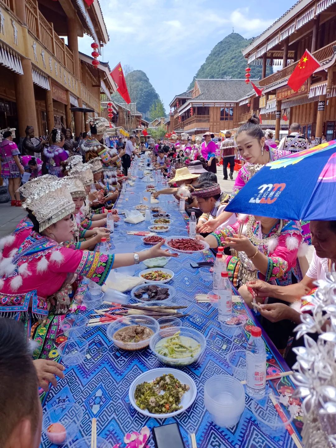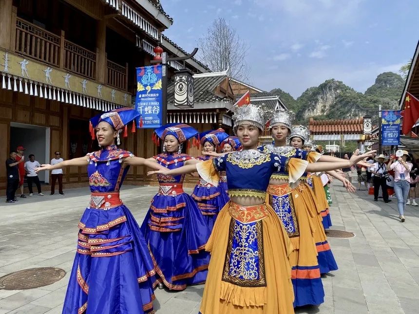 融水苗族自治縣風(fēng)情苗鄉(xiāng)景區(qū)舉行了“雙節(jié)”開(kāi)街儀式,舉辦了融水百節(jié)鄉(xiāng)、苗疆不夜場(chǎng)等相關(guān)節(jié)慶活動(dòng),游客通過(guò)主題演藝、巡游、秀場(chǎng)、市集、展覽等內(nèi)容體驗(yàn)民族風(fēng)情、了解民族文化,融入一場(chǎng)“百節(jié)之鄉(xiāng)”的狂歡派對(duì)。