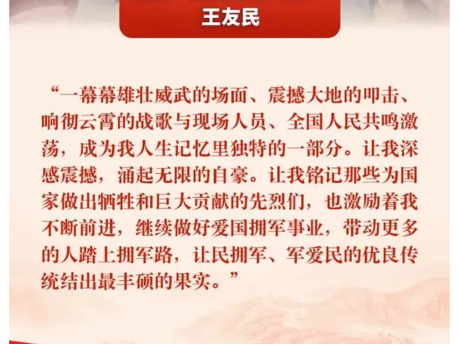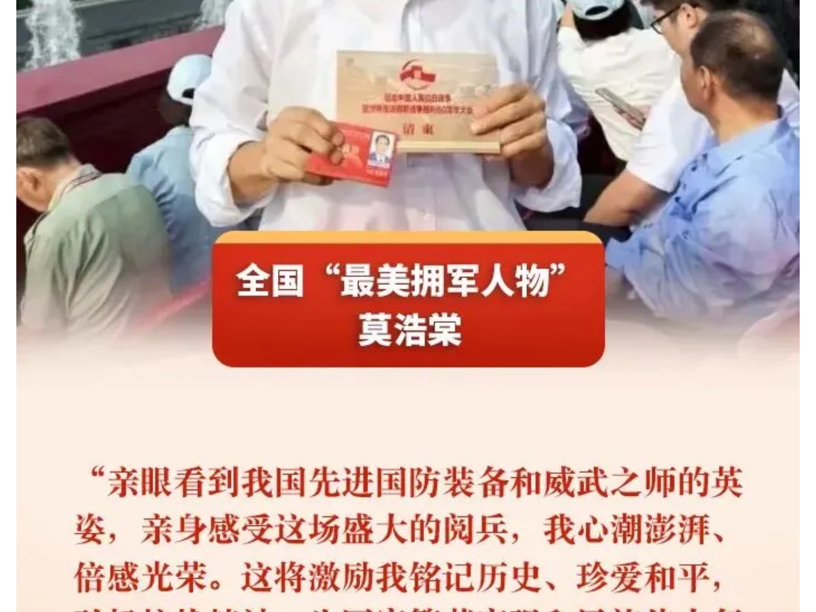 【最美擁軍人物】九三閱兵觀禮臺(tái)上的雙擁身影,他們是誰(shuí)? 發(fā)布時(shí)間:2025年09月19日 10時(shí)來(lái)源:本站原創(chuàng)瀏覽:94 人次